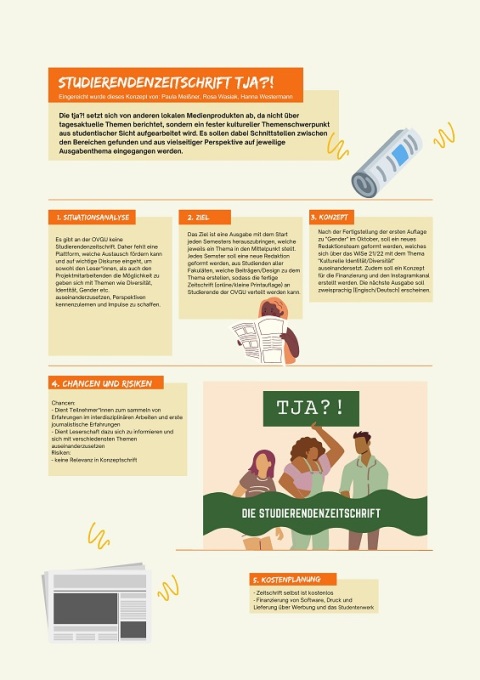 Our project came together through our Cultural Engineering course. We have a project module there and just wanted to start our own project because there was no existing one in our area of interest. Then we thought about what was missing at OVGU and agreed that a newspaper for students was missing. And that's how it started and we thought about topics.